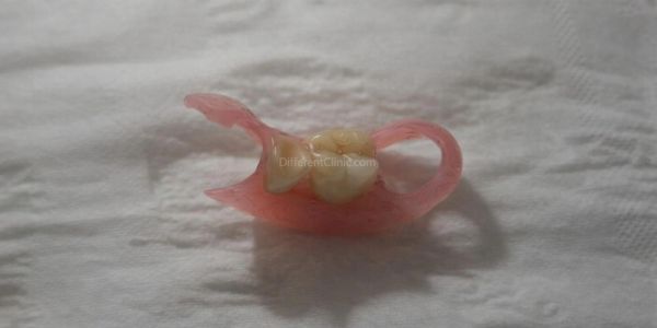 A spoon denture is a small, clasp-free acrylic partial denture used as a temporary aesthetic solution for missing front or back teeth.
